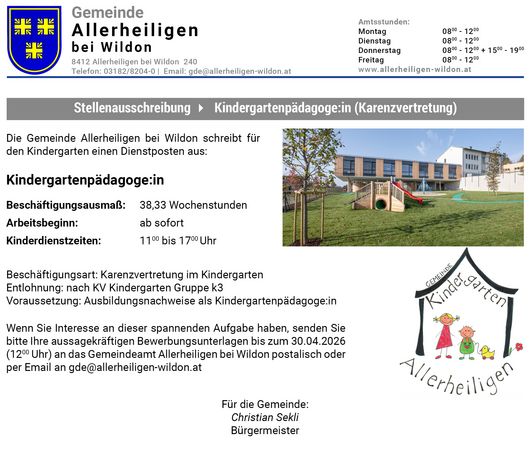 Das monatliche Info-Schreiben der Gemeinde Allerheiligen bei Wildon.